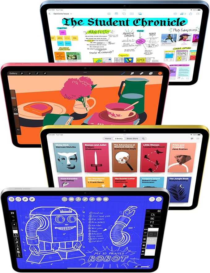 PERFORMANCE AND STORAGE—The superfast A16 chip delivers a boost in performance for your favorite activities. And with all-day battery life, iPad is perfect for playing immersive games and editing photos and videos. Storage starts at 128GB and goes up to 512GB.