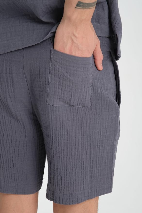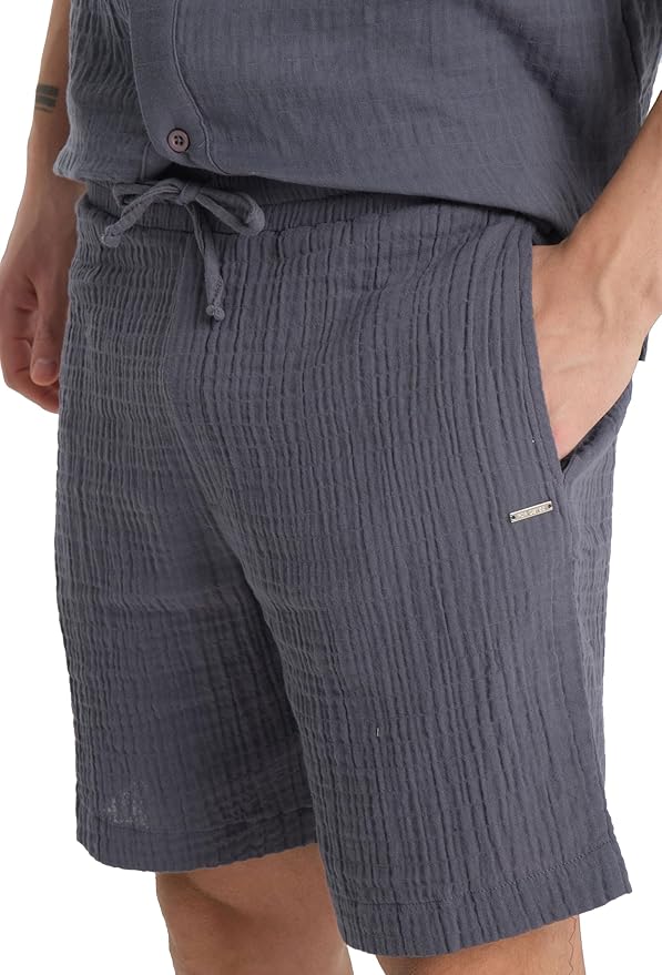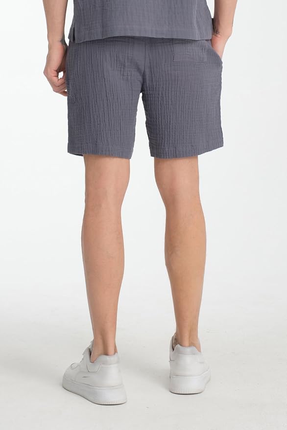 Men’s Cotton Muslin Drawstring Shorts, Breathable Summer Casual Wear Shorts, Grey